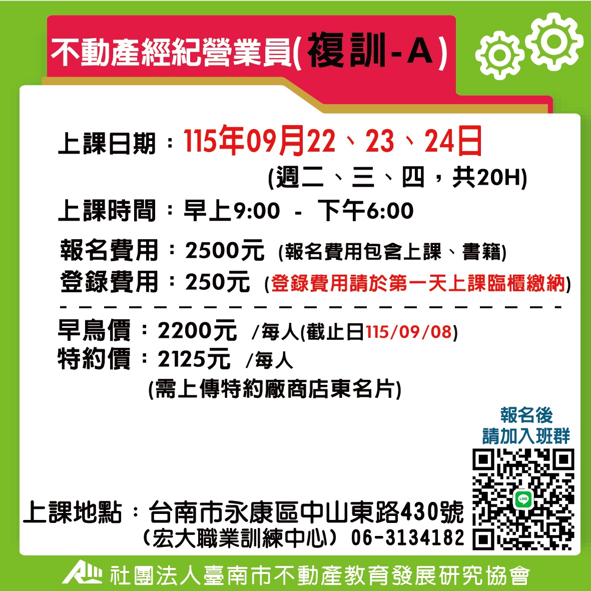 不動產經紀營業員-複訓 (複訓) A班-115(下) 9/22-9/24 不動產經紀營業員(複訓) 我要報名 報名費用 2500 剩餘可報名人數 48 **請詳讀【課程介紹】與【報名須知】** **報名資料:填寫不實、不完整者,將不予錄取** **報名後,請務必加入班群** 回列表頁 我要報名