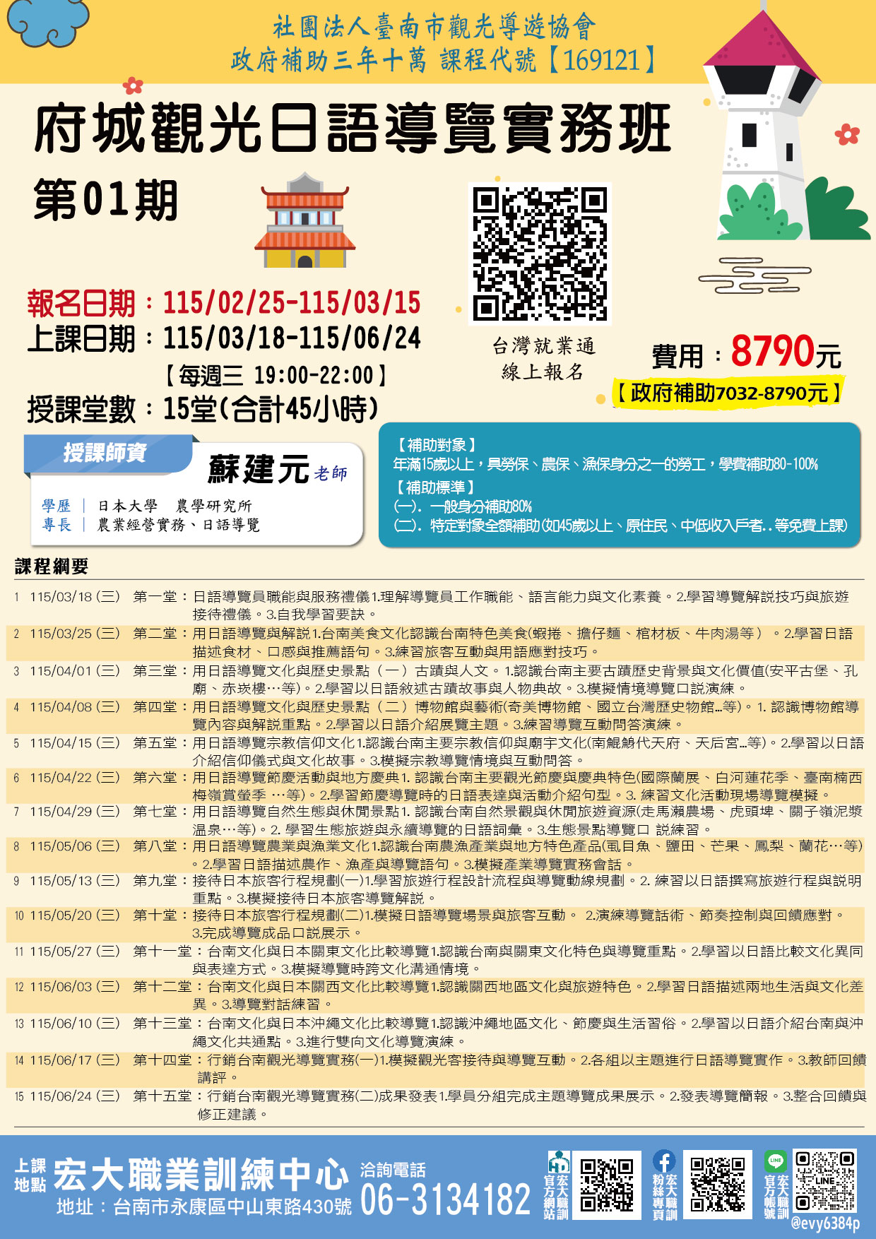 【169121】115/3/18-115/6/24 府城觀光日語導覽實務班第01期