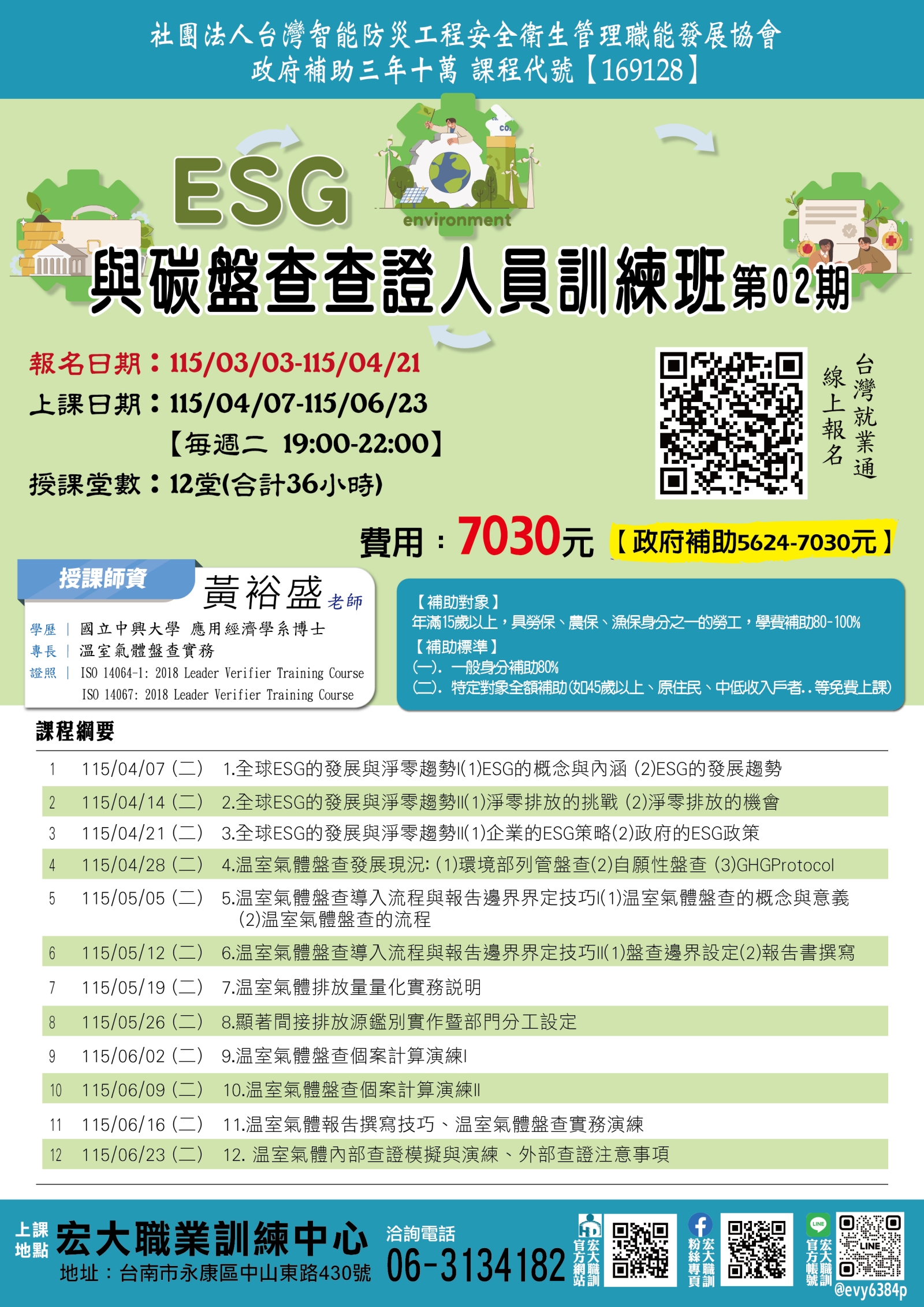 【169128】115/4/7-115/6/23 ESG與碳盤查查證人員訓練班第02期