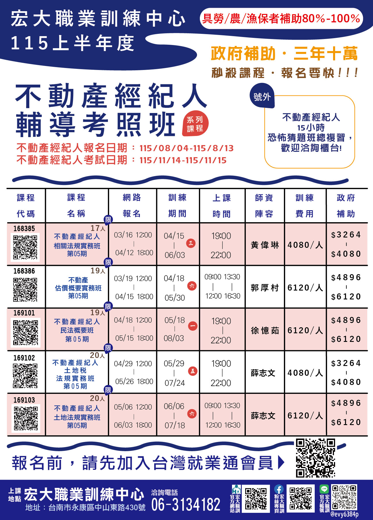 115(上) 不動產經紀人輔導考照班系列課程