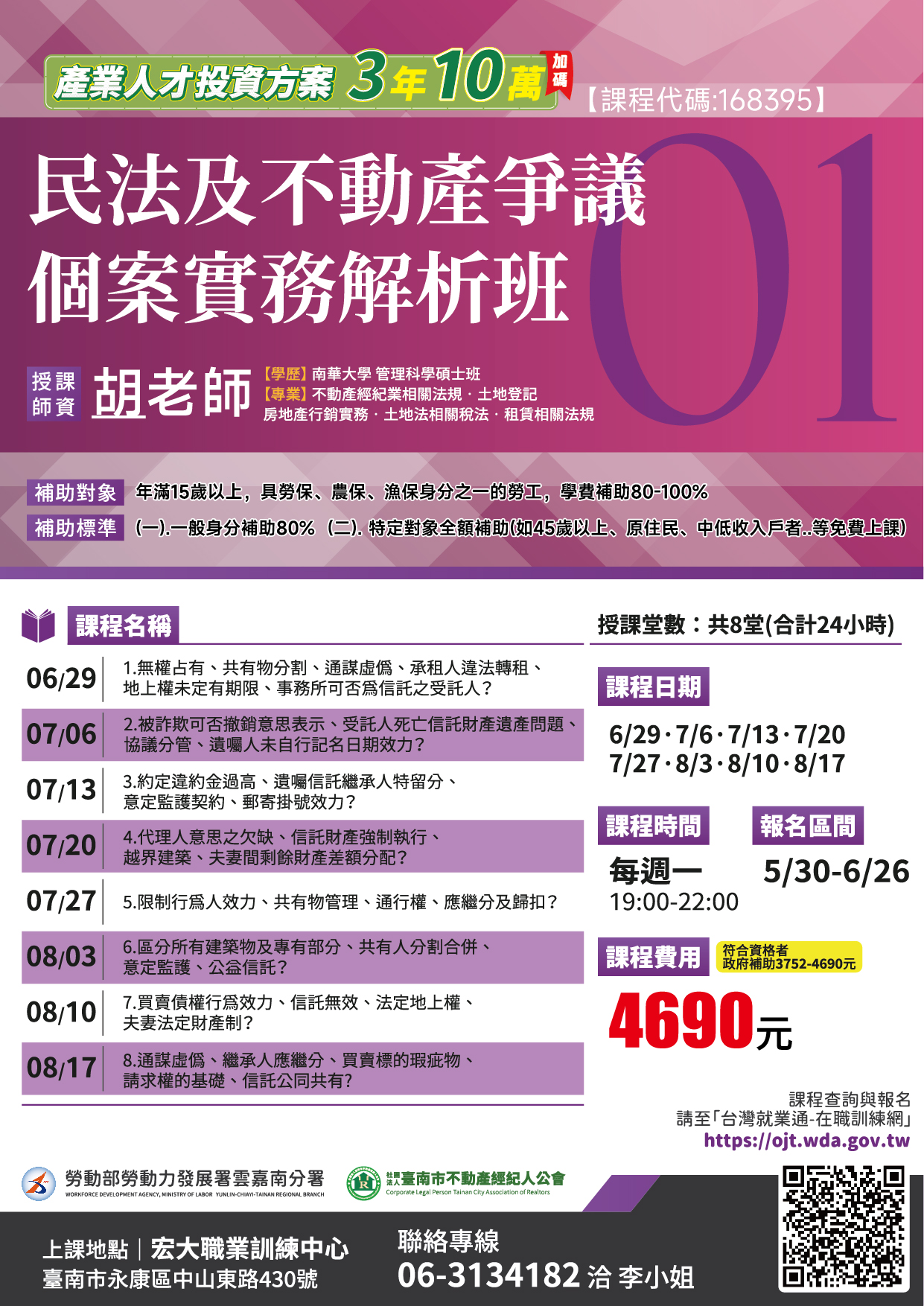 115/6/29-8/17民法及不動產爭議個案實務解析班第01期