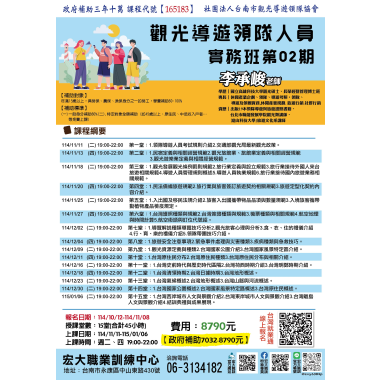 產業人才投資計畫課程總表 114年度下半年產業人才投資計畫之課程總覽 政府補助 三年十萬 課程介紹 我要報名 人力資源與管理 【164809】114/10/14 ESG與碳盤查查證人員訓練班第01期 政府補助 三年十萬 課程介紹 我要報名 電腦數位科技 【165105】114/10/07 AI品牌視覺設計與應用實務班第01期 政府補助 三年十萬 課程介紹 我要報名 電腦數位科技 【165204】114/10/20 AI影音創作入門班第01期 政府補助 三年十萬 課程介紹 我要報名 職場語言 【165060】114/10/20 手語多元技能基礎班第01期 政府補助 三年十萬 課程介紹 我要報名 健康運動管理 【164995】114/10/28 樂齡運動指導員培力實務班第03期 政府補助 三年十萬 課程介紹 我要報名 人力資源與管理 【164810】114/11/2 ESG與產品碳足跡查證人員訓練班第01期 政府補助 三年十萬 課程介紹 我要報名 不動產實務 【165220】114/11/3 非都市土地變更使用實務解析班第01期 政府補助 三年十萬 課程介紹 我要報名 電腦數位科技 【164944】114/11/05 AI工作流應用實踐班第02期 政府補助 三年十萬 課程介紹 我要報名 電腦數位科技 114/11/12 AI短影片行銷班第01期 政府補助 三年十萬 課程介紹 我要報名 觀光休閒旅遊 【165183】114/11/11 觀光導遊領隊人員實務班第02期 政府補助 三年十萬 課程介紹 我要報名 不動產證照補助 114(下)年度 地政士考照班 政府補助 三年十萬 【按下課程介紹】 依照各科的報名區間,連結至台灣就業通報名,謝謝!! 課程介紹 我要報名 健康運動管理 【165064】114/11/27 樂齡活力律動帶領培訓班第03期 政府補助 三年十萬 課程介紹 我要報名 人力資源與管理 【164811】114/11/30 企業永續報告書撰寫實務班第01期 政府補助 三年十萬 課程介紹 我要報名 人力資源與管理 【164812】114/12/04 碳中和實務班第01期 政府補助 三年十萬 課程介紹 我要報名 人力資源與管理 【164945】114/12/05 就業服務人力仲介及管理班第01期 政府補助 三年十萬 課程介紹 我要報名 觀光休閒旅遊 【164998】114/12/06 觀光導遊領隊人員實務班第02期 政府補助 三年十萬 課程介紹 我要報名 不動產實務 【165222】114/12/11 共有土地紛爭實例處理解析班第01期 政府補助 三年十萬 課程介紹 我要報名 人力資源與管理 【164813】114/12/21 淨零碳規劃管理人員培訓實務班第01期 政府補助 三年十萬 課程介紹 我要報名