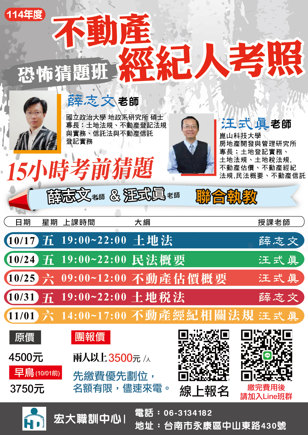 10/17、10/24、10/25、10/31、11/01 不動產經紀人考照-恐怖猜題班