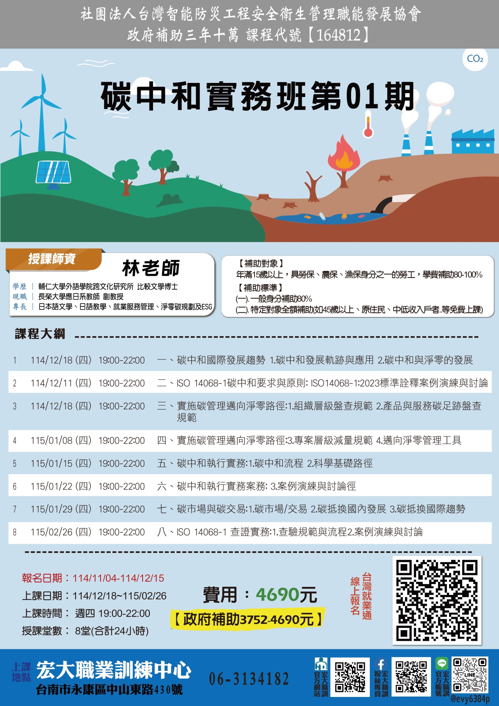 請至台南市永康區中山東路430號宏大職訓中心現場辦理