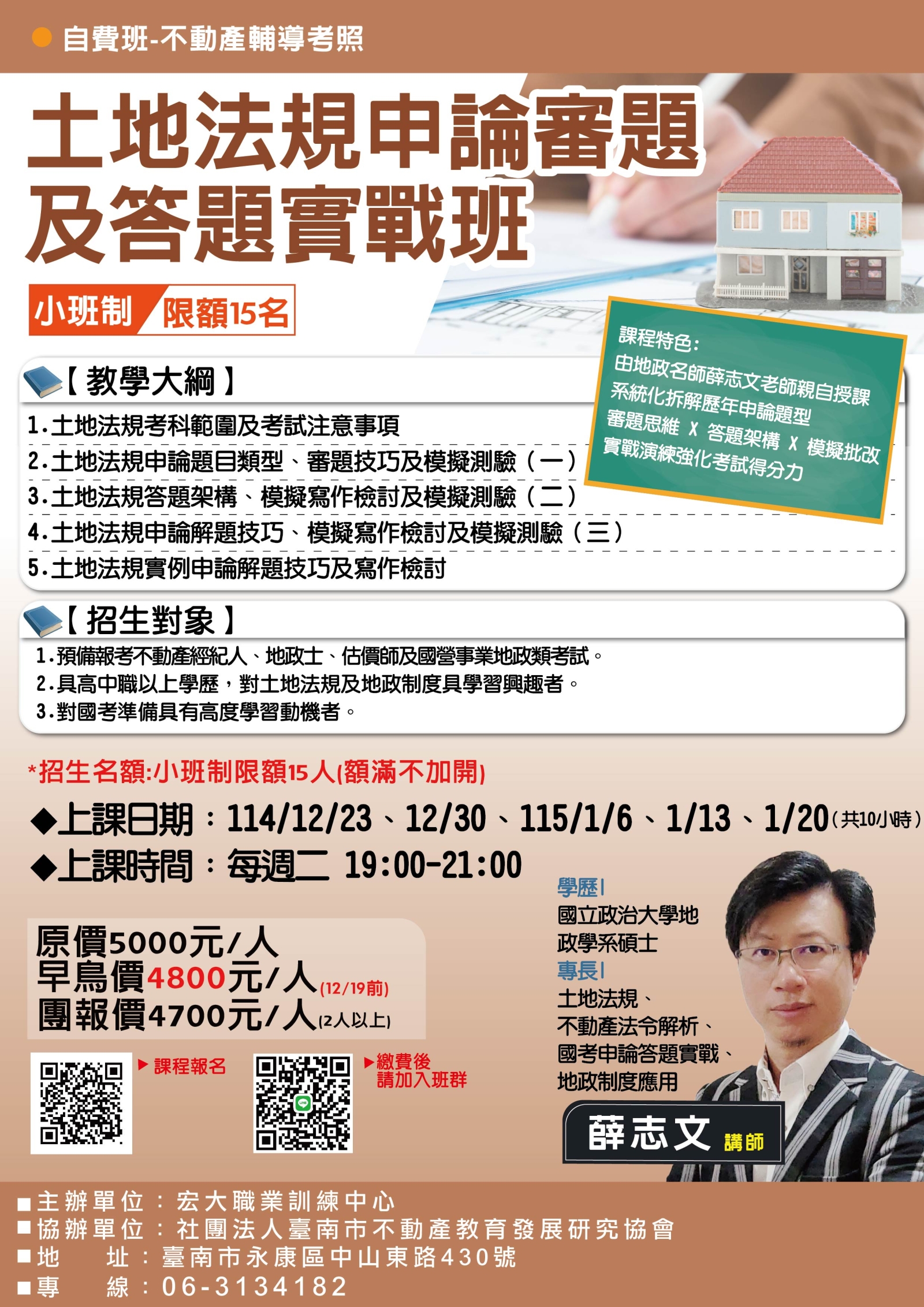 1223、12/30、115/1/6、1/13、1/20 土地法規申論審題及答題實戰班(共10小時)