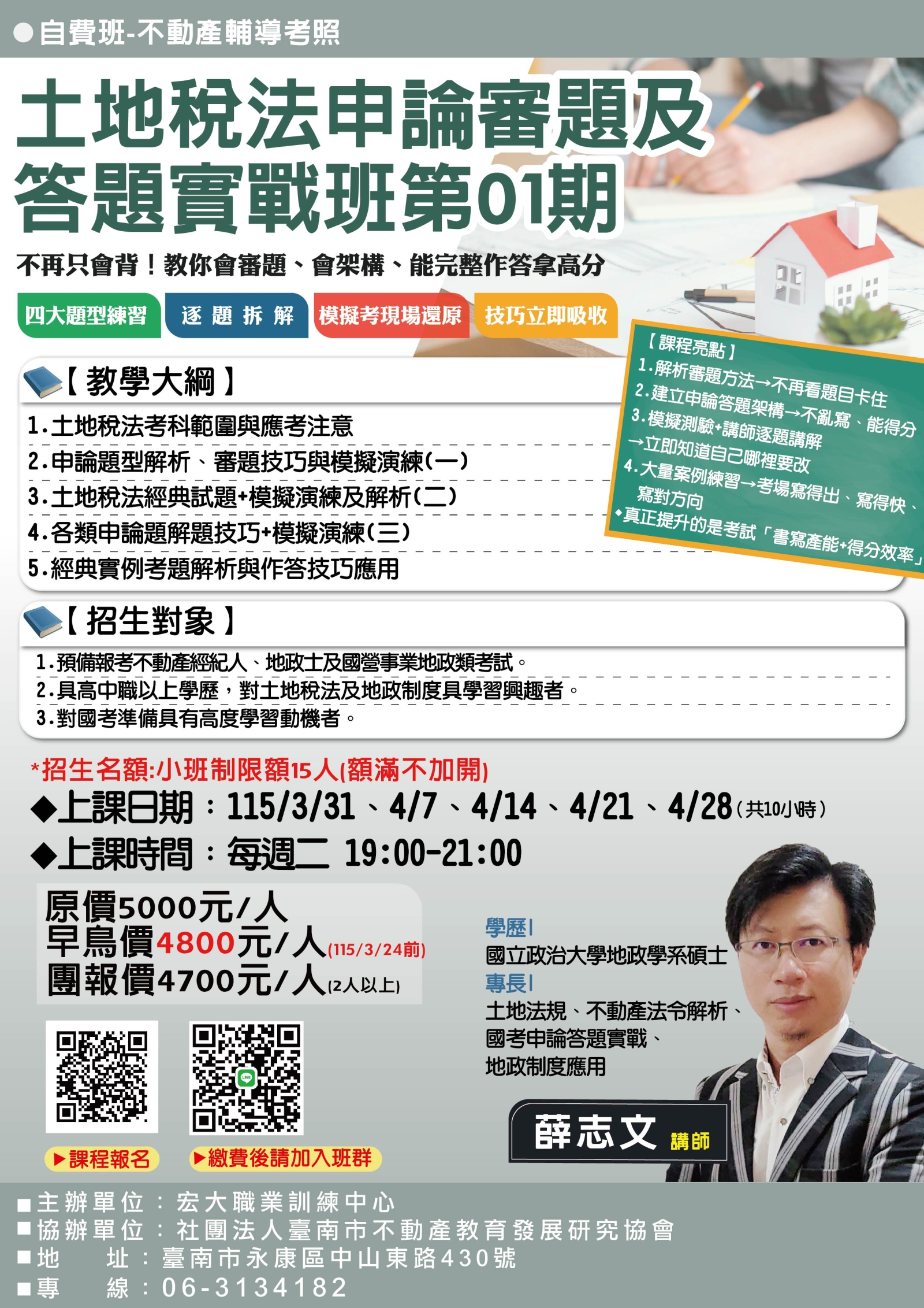 115-0331、0407、0421、0428土地稅法申論審題及答題實戰班第03期