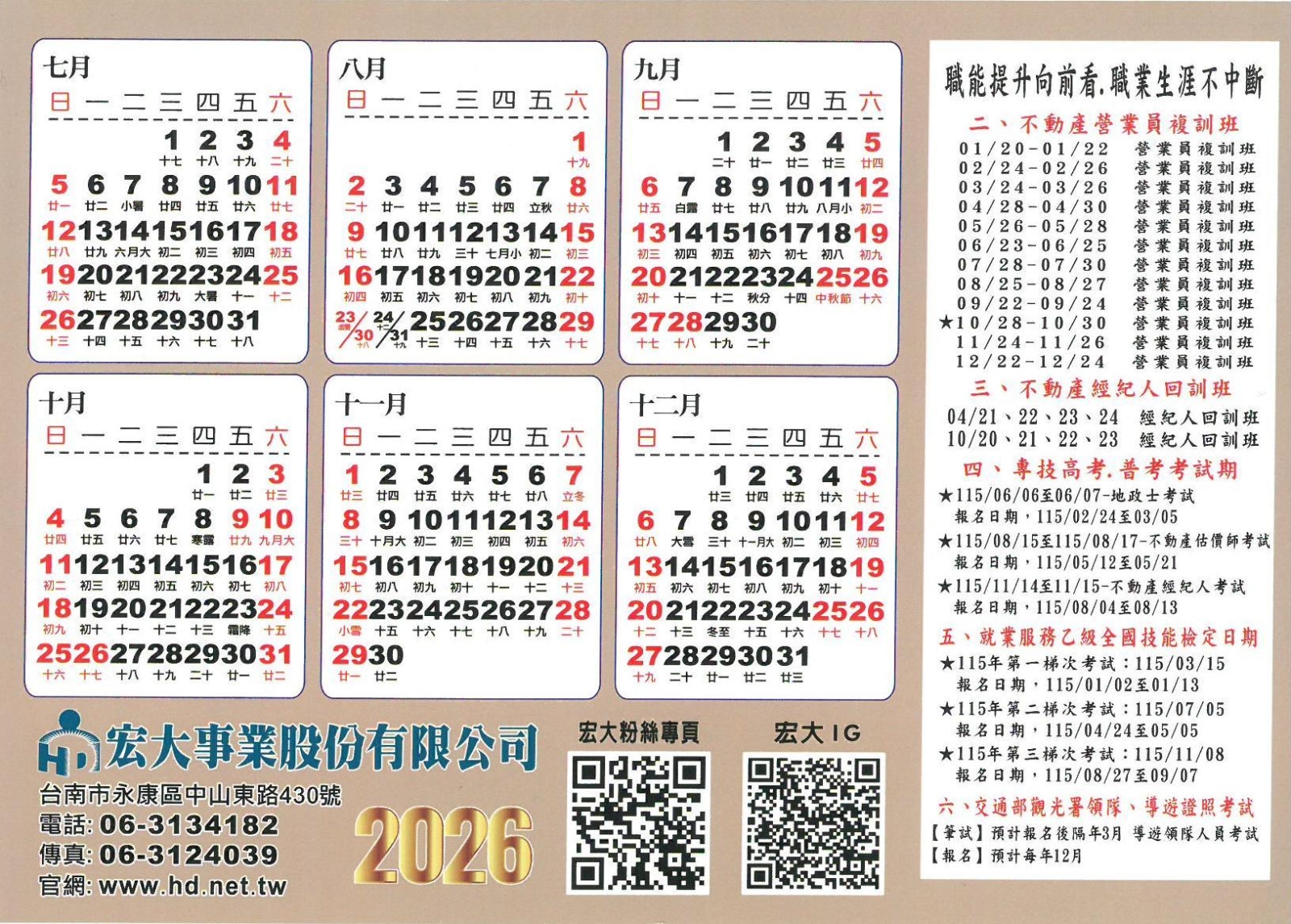 請至台南市永康區中山東路430號宏大職訓中心現場辦理
