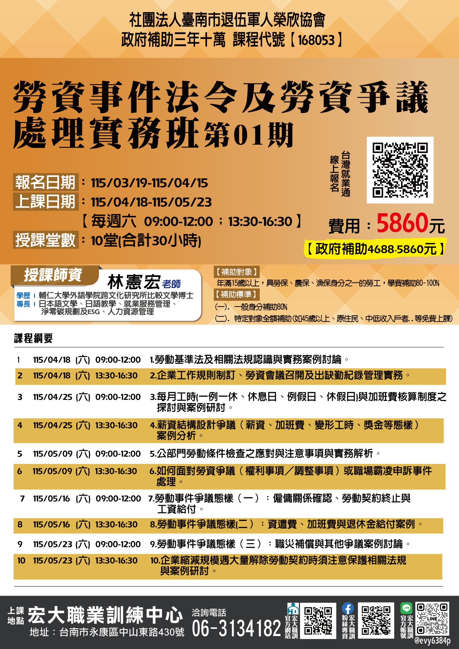 【168053】115/04/18-115/05/2勞資事件法令及勞資爭議處理實務班第01期