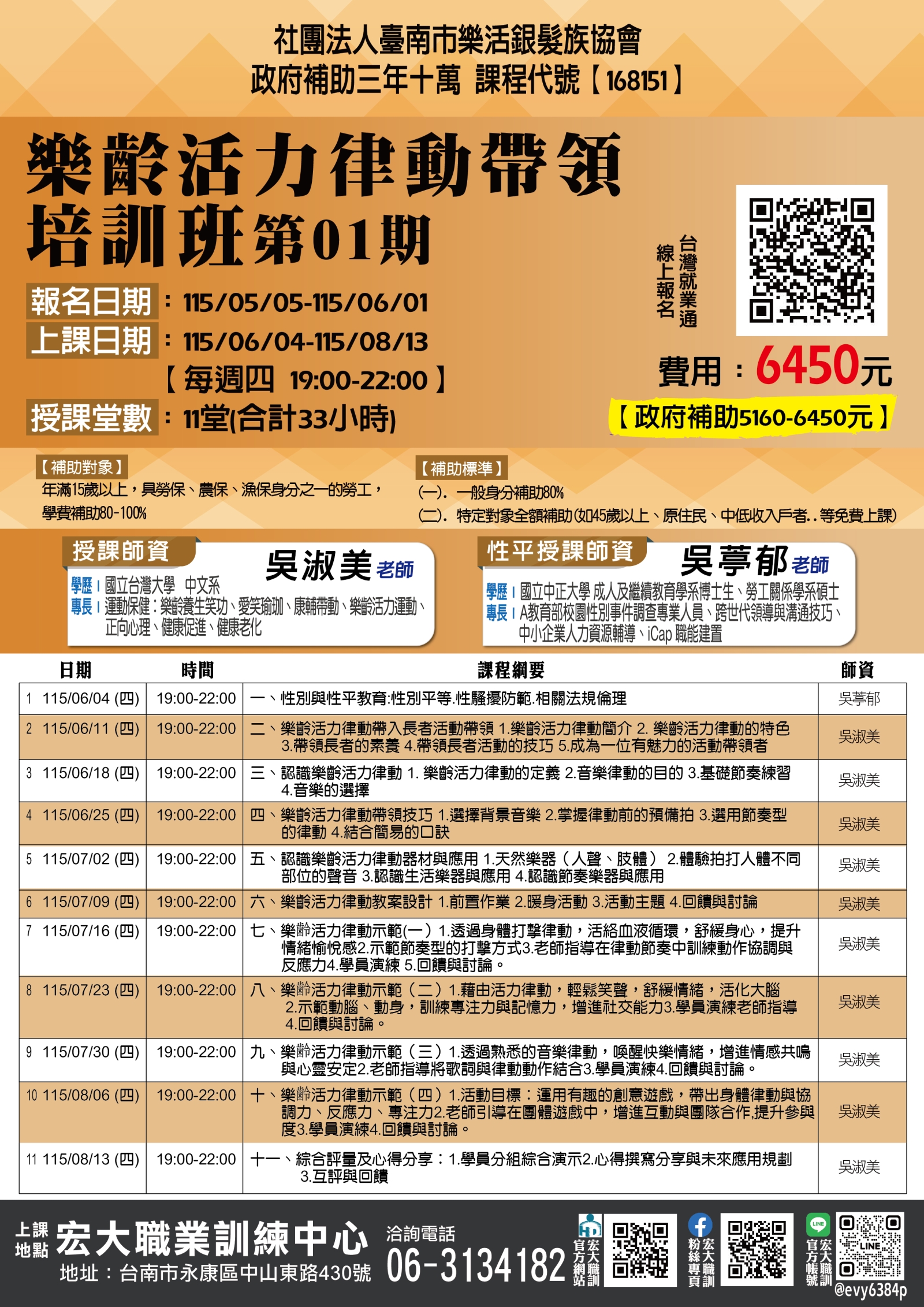 【168151】115/06/04-115/08/13樂齡活力律動帶領培訓班第04期