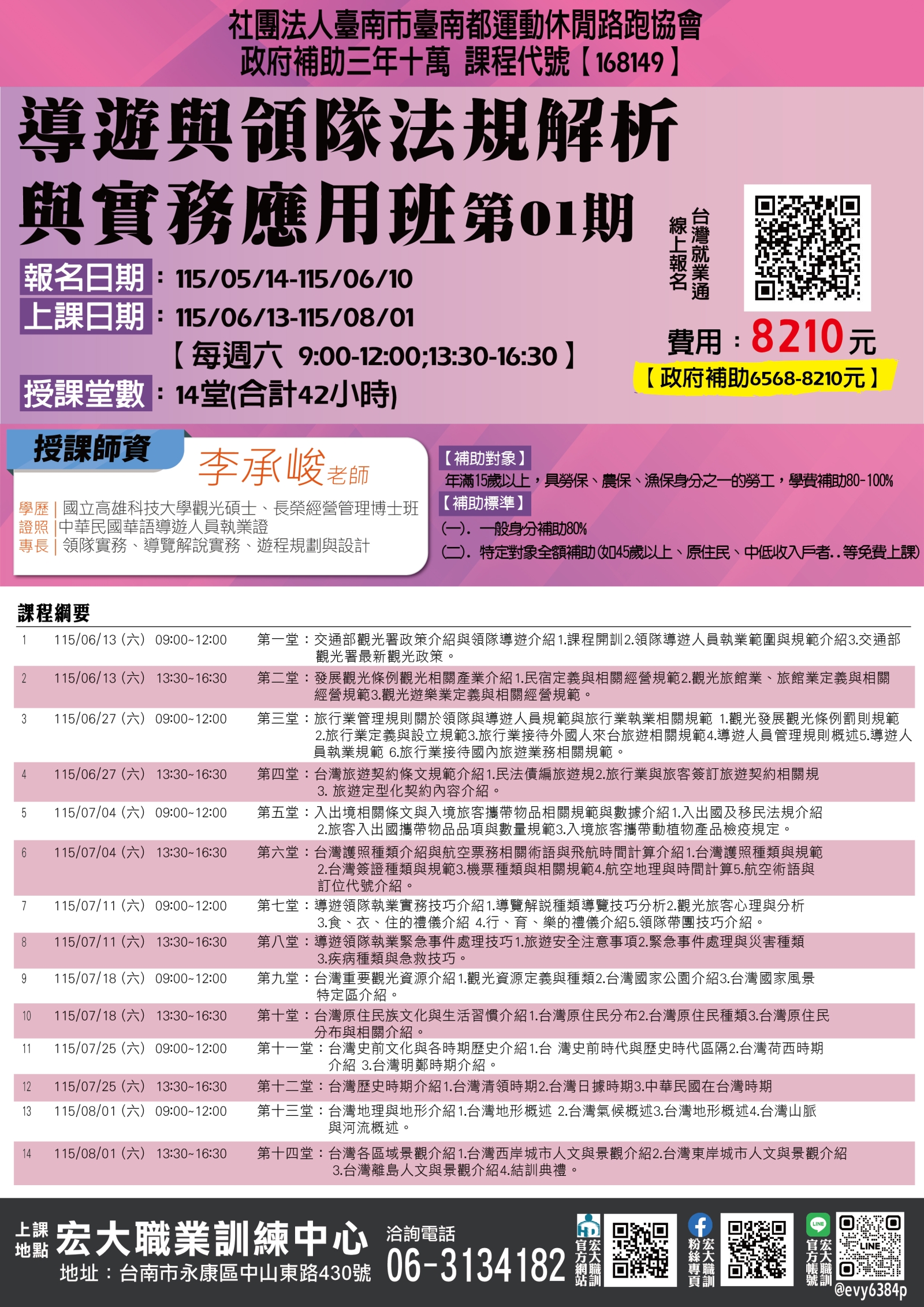 【168149】115/06/13-115/08/01導遊與領隊法規解析與實務應用班第01期