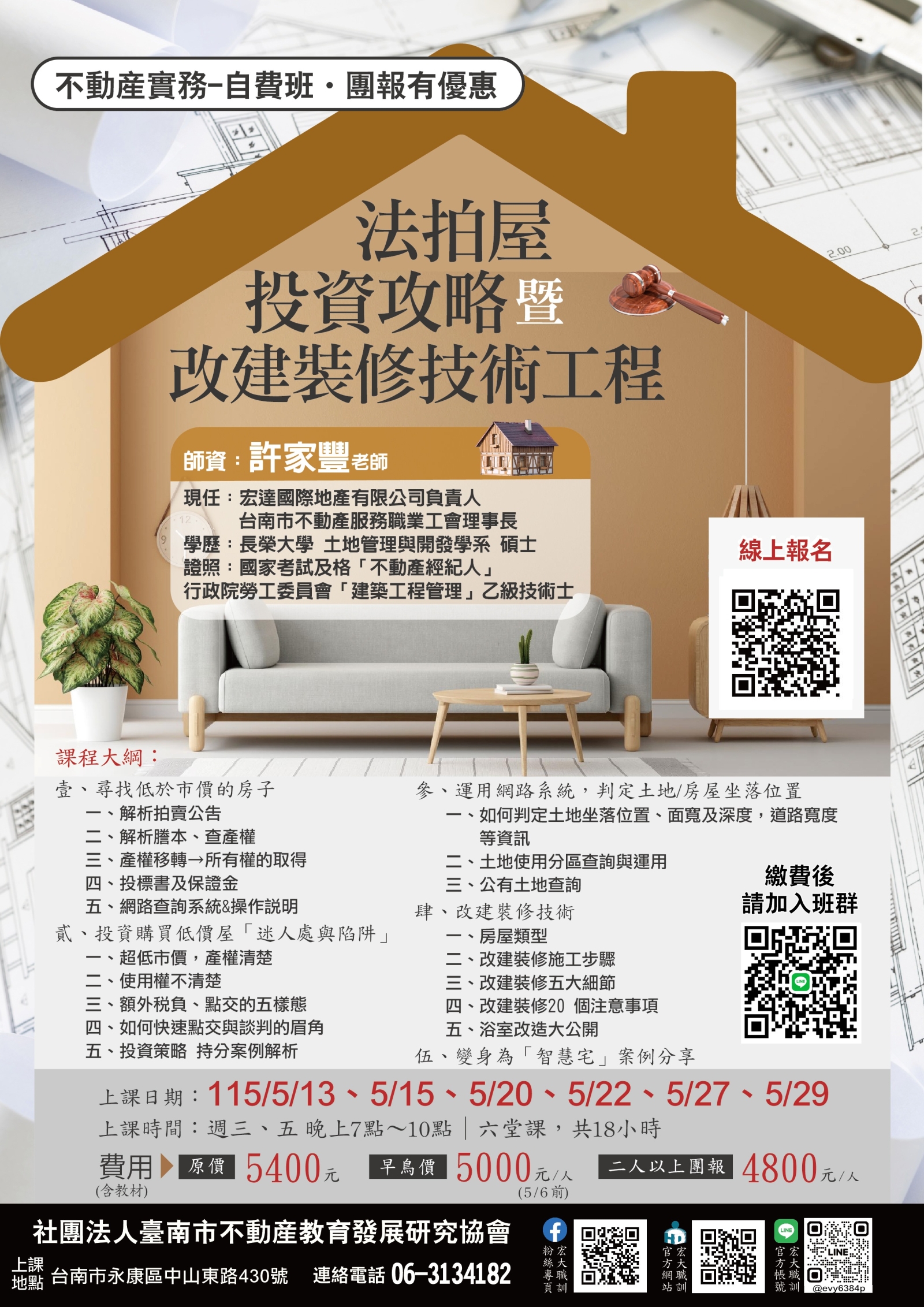 115/05/13 法拍屋投資攻略暨改建裝修技術工程