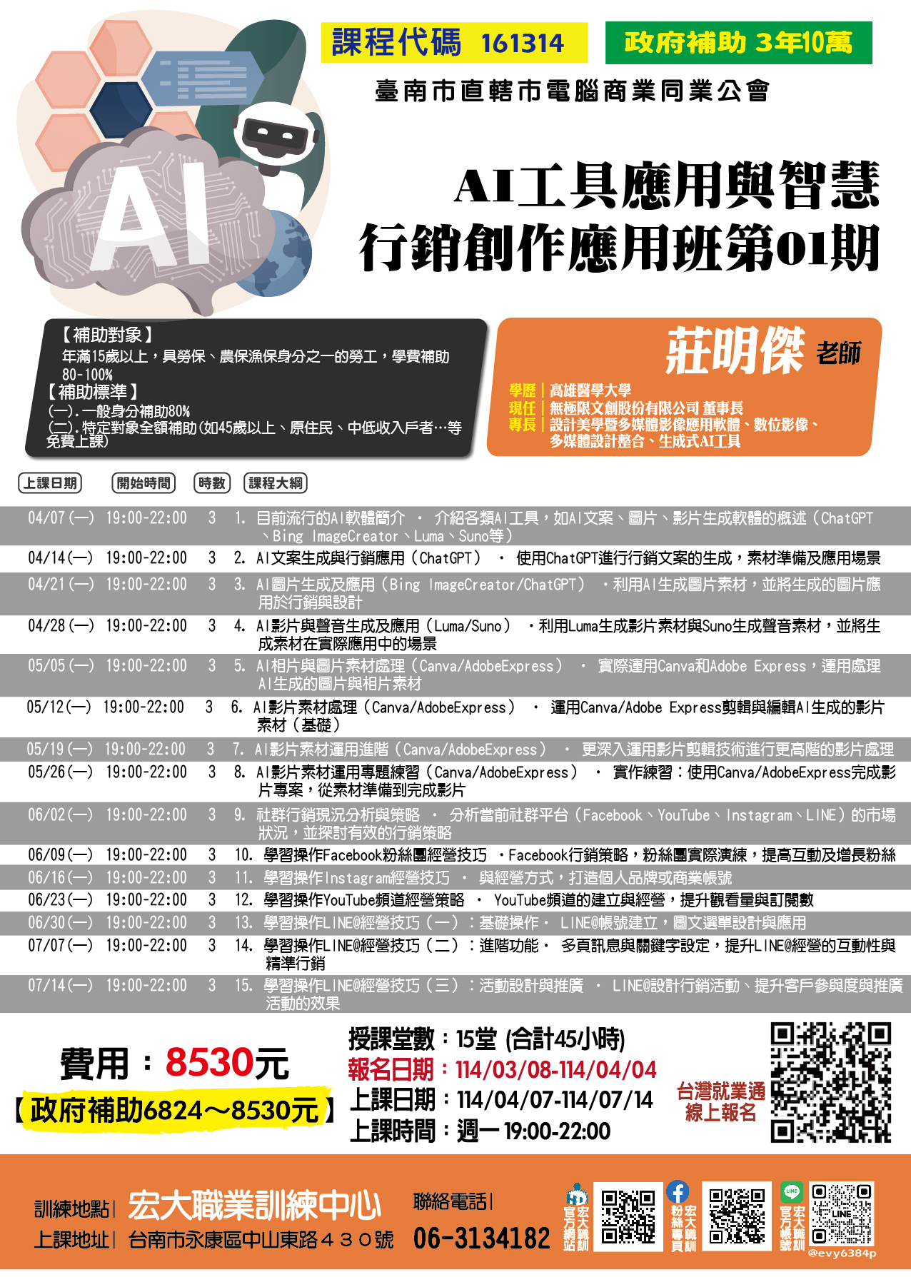 【161314】 4/7 AI工具應用與智慧行銷創作應用班第01期