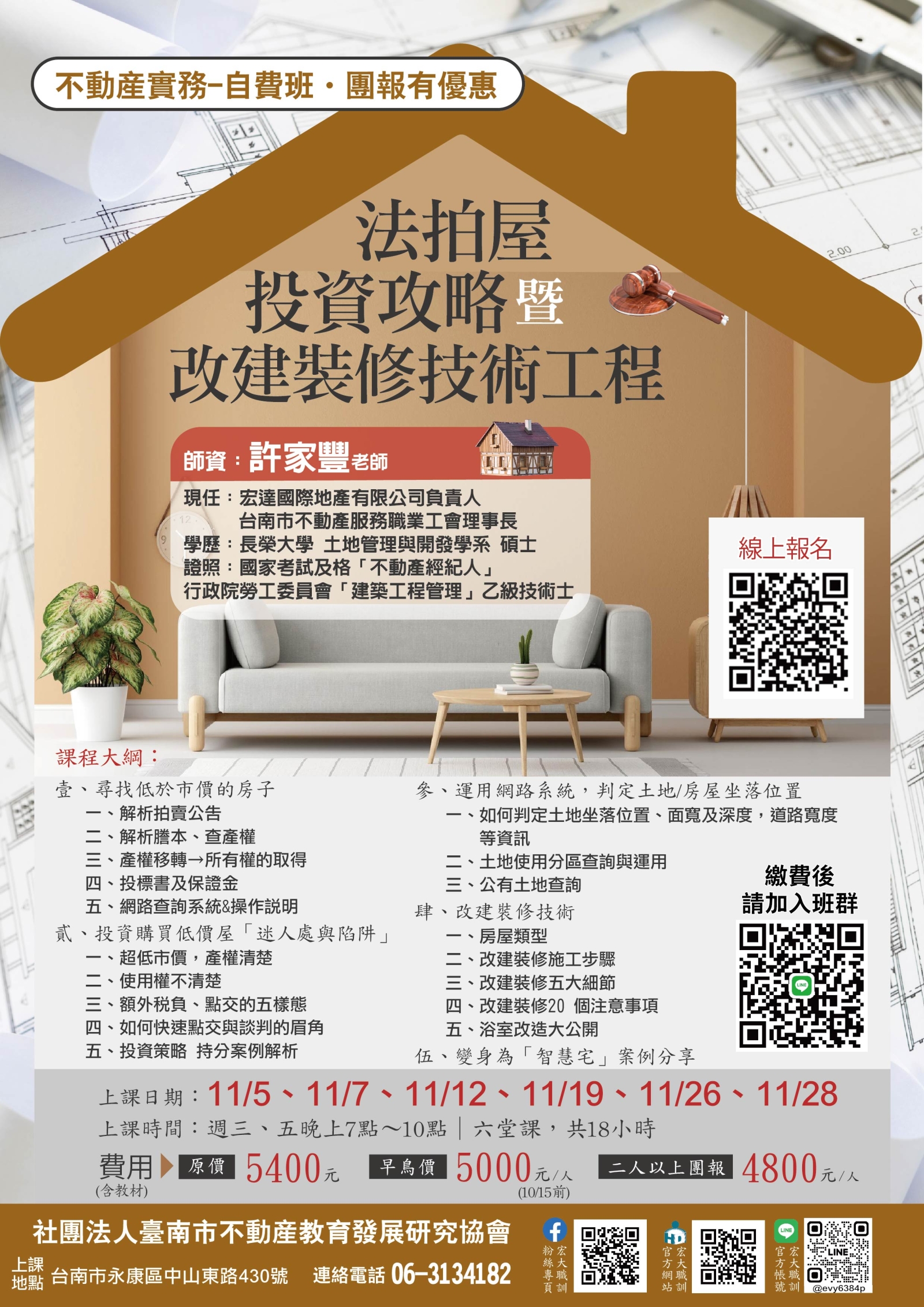 講師許家豐老師擁有多年投資與工程改建經驗,