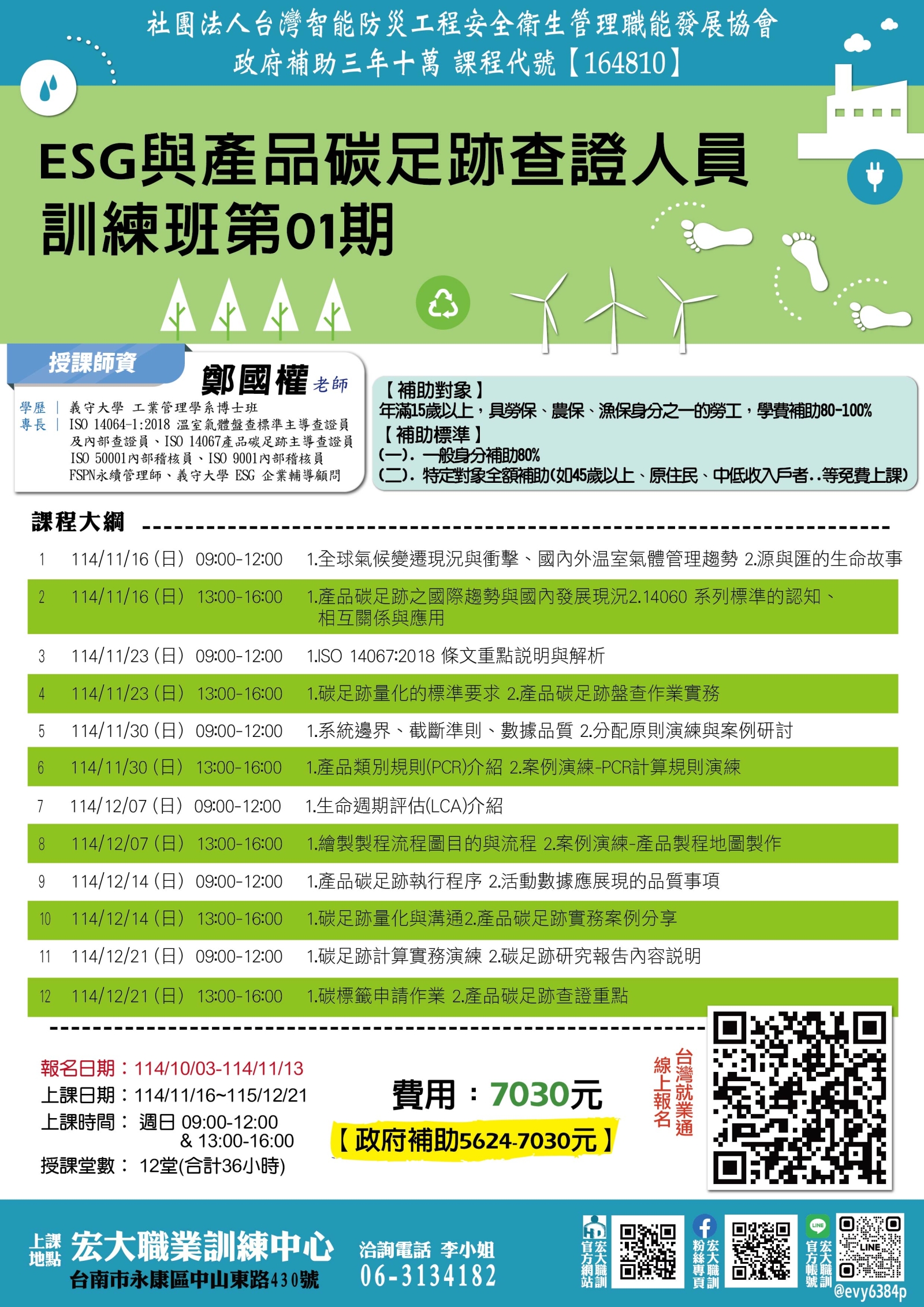 【164810】114/11/16 ESG與產品碳足跡查證人員訓練班第01期