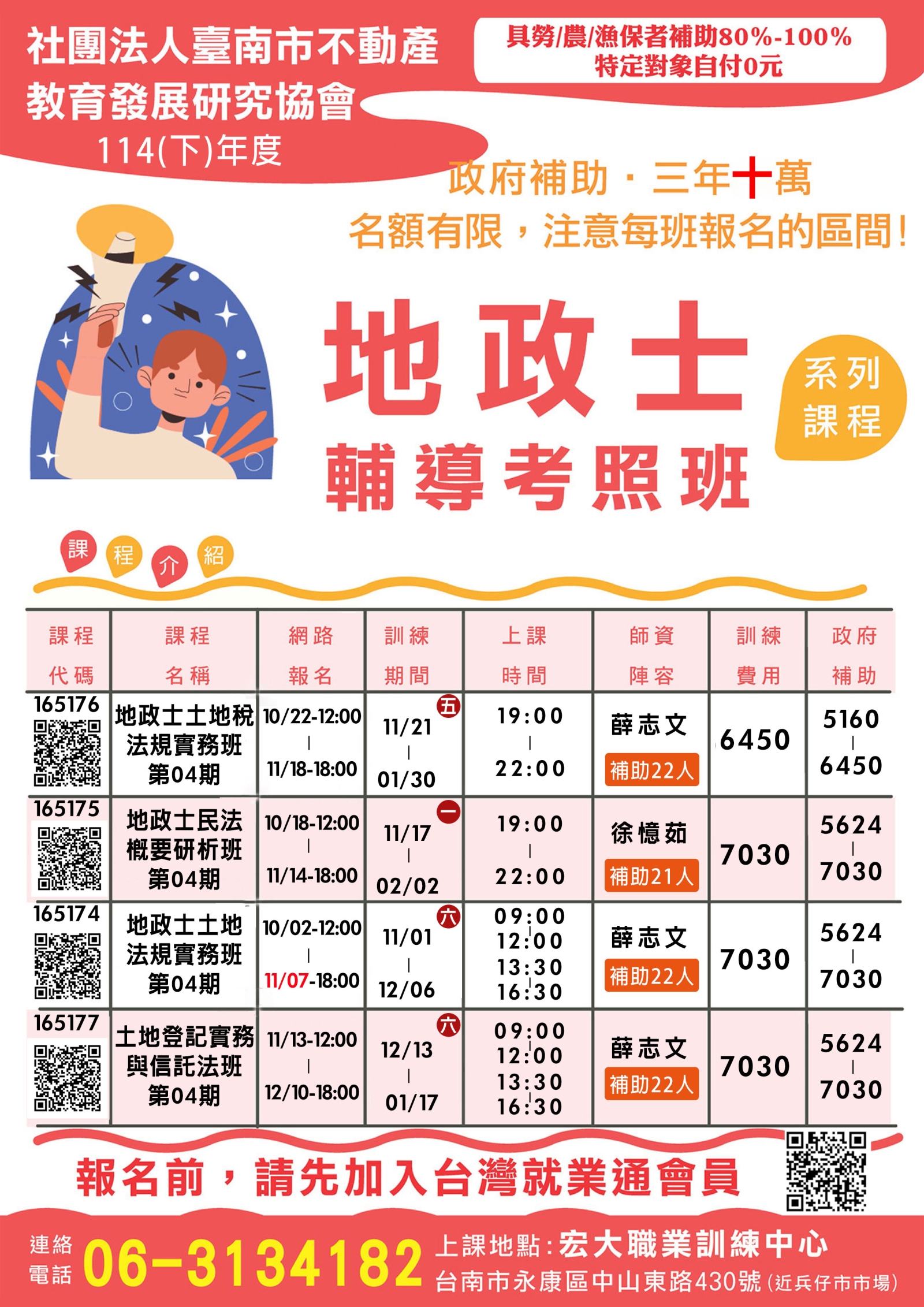課程代碼【165174】地政士土地法規實務班第04期 報名連結~
