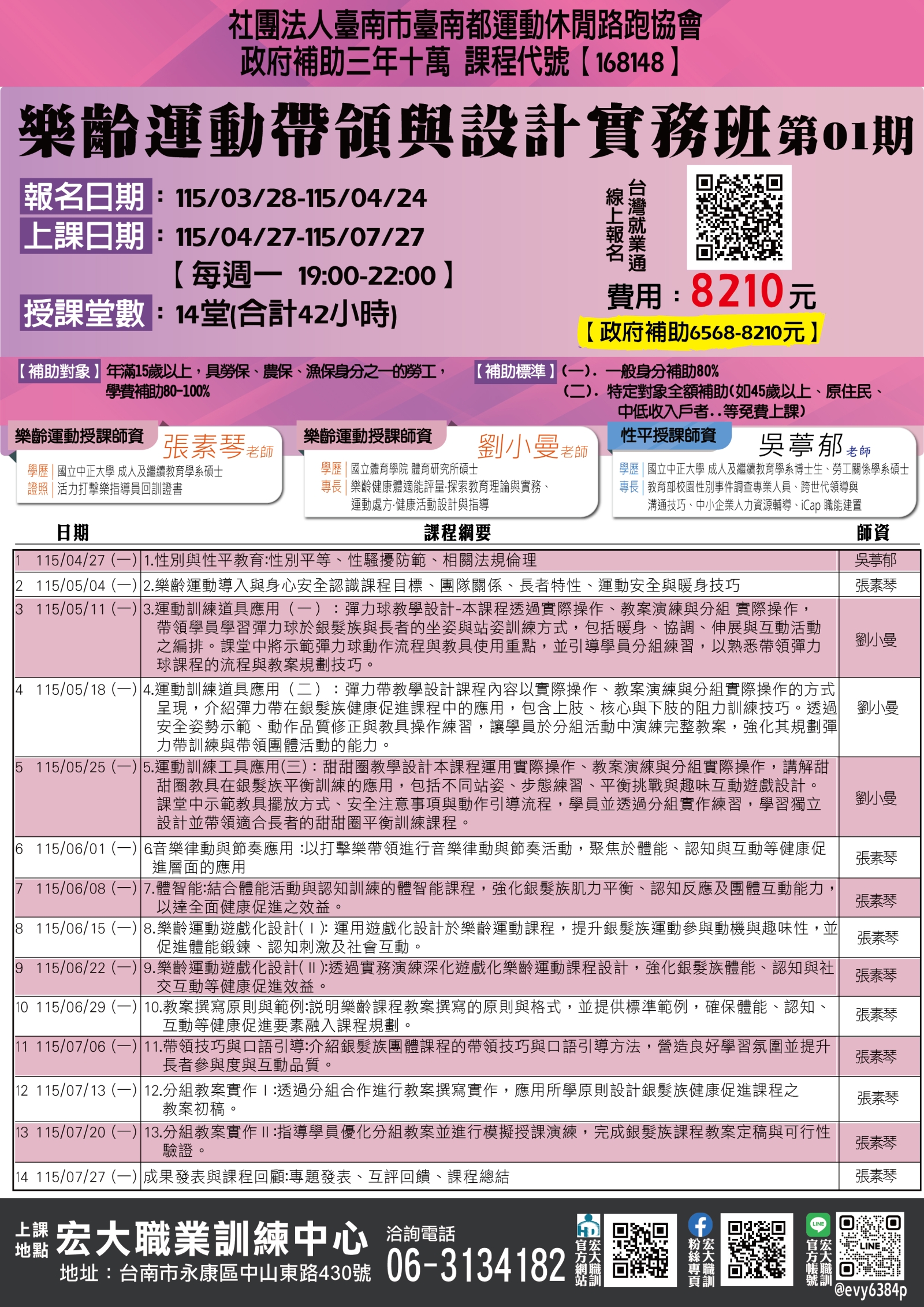 【168148】115/04/27-115/07/27樂齡運動帶領與設計實務班第01期