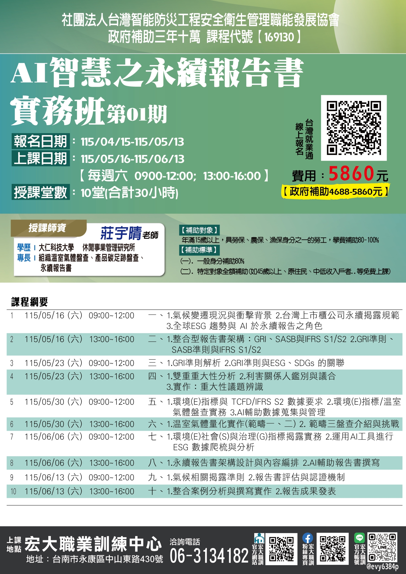 【169130】115/05/16-115/06/13AI智慧之永續報告書實務班第01期
