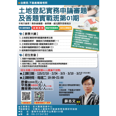 115(上) 03/14、03/15、03/21、03/22 不動產經紀營業員 (新訓) 假日班