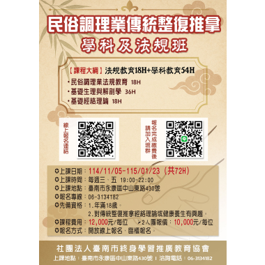 114/11/5-115/1/23 民俗調理業傳統整復推拿 學科及法規班