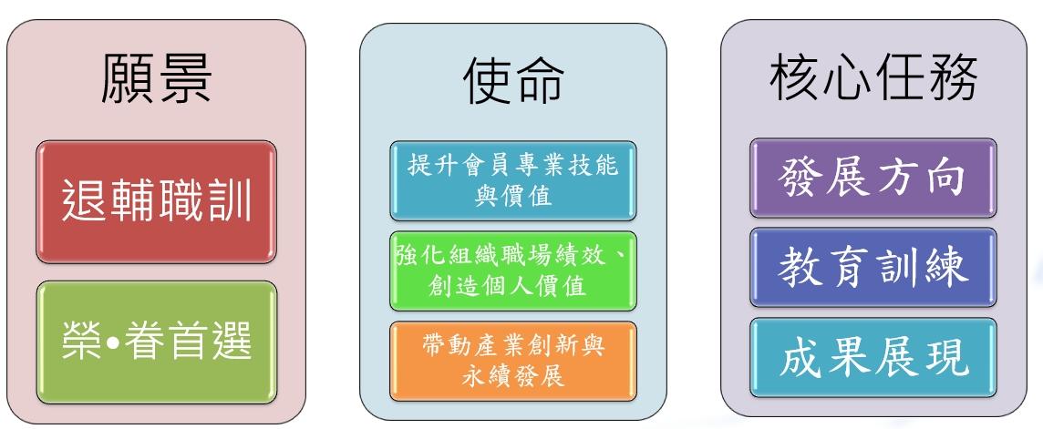 三:成果展現(符合本會章程六條第4款)分為個人面、職場面、組織面及未來面