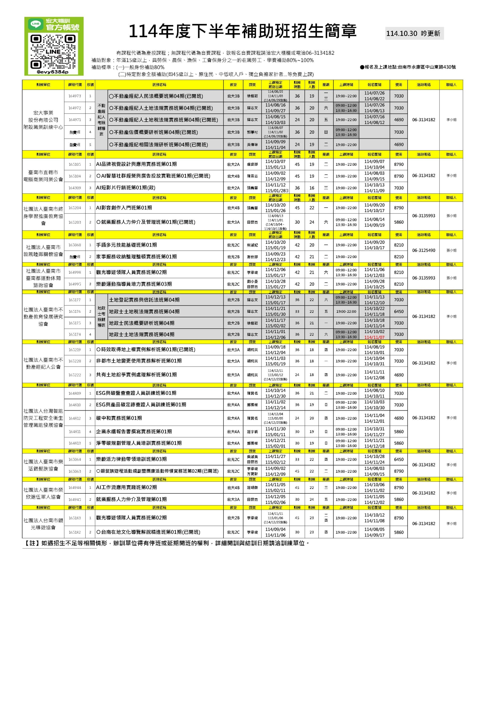 請至台南市永康區中山東路430號宏大職訓中心現場辦理