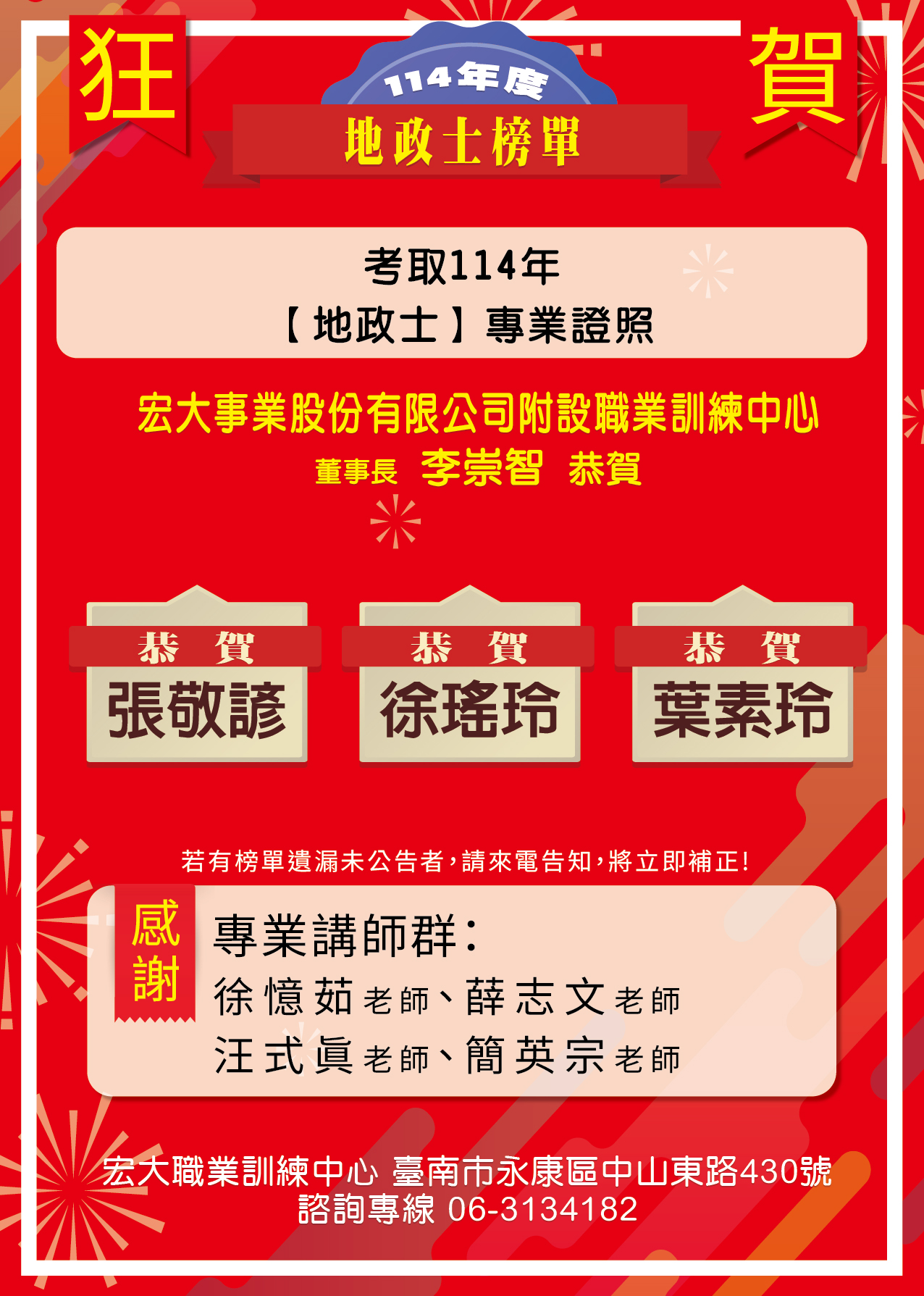 請至台南市永康區中山東路430號宏大職訓中心現場辦理