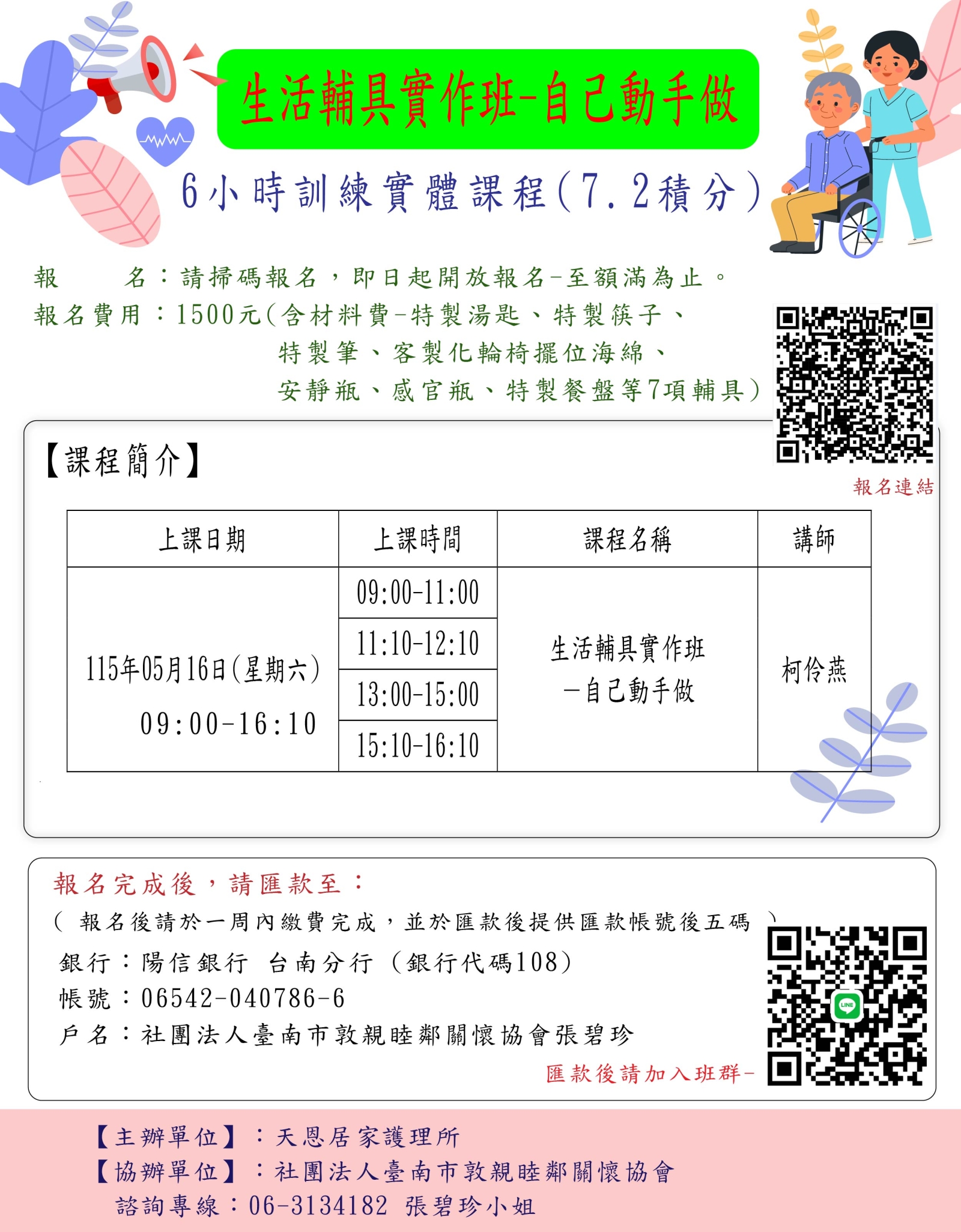 115/5/16 生活輔具實作班-自己動手做 6H (7.2積分)