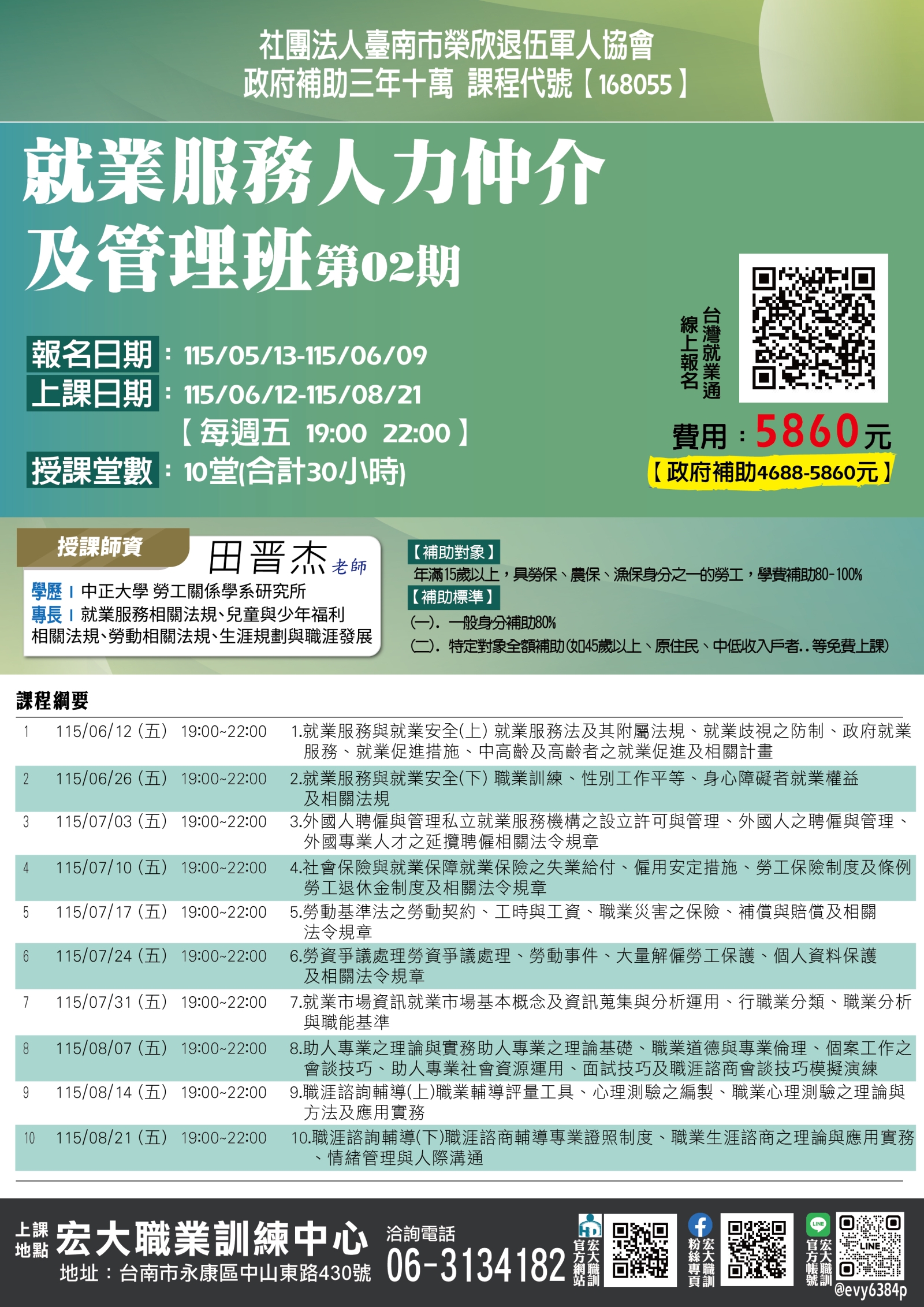 【168055】115/06/12-115/08/21就業服務人力仲介及管理班第02期